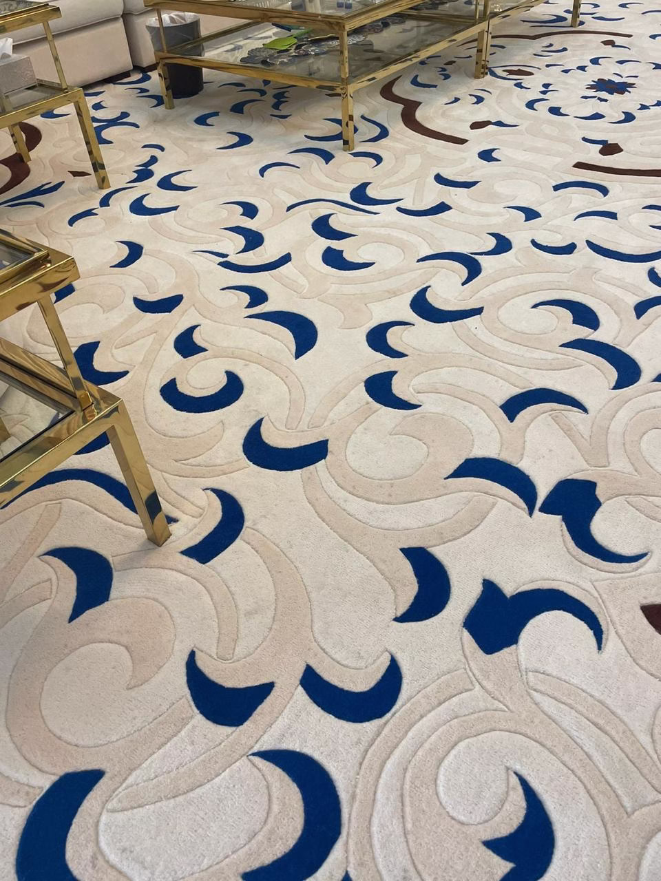 We offer a wide selection including wall-to-wall carpets, mosque carpets, office carpets, custom rugs, and carpets for villas, hotels, and commercial spaces.